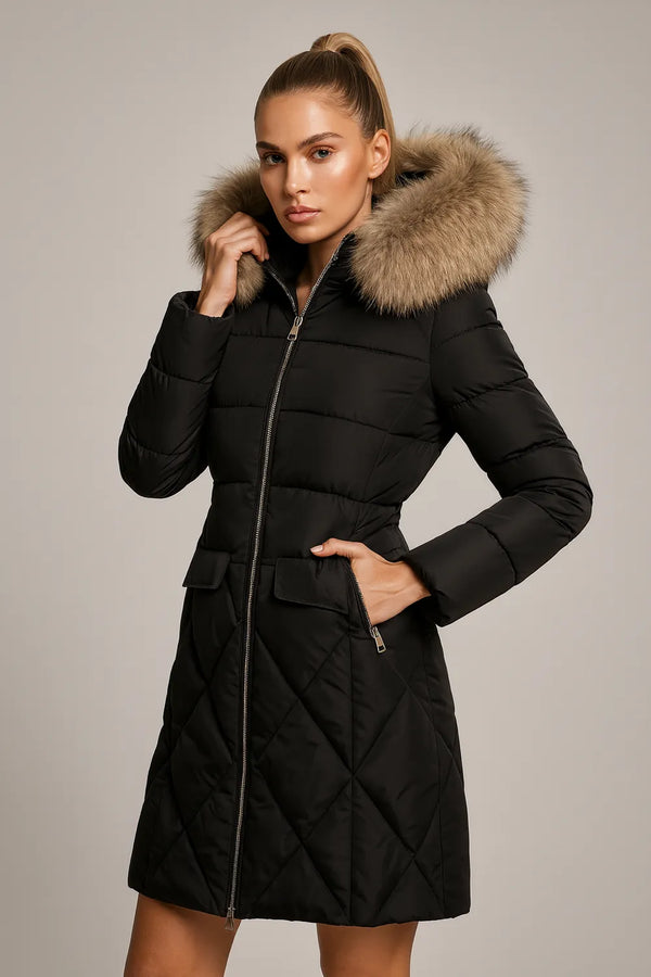 - Στυλ λαιμόκοψης/ ώμου: Με κουκούλα και τελείωμα από ψεύτικη γούνα