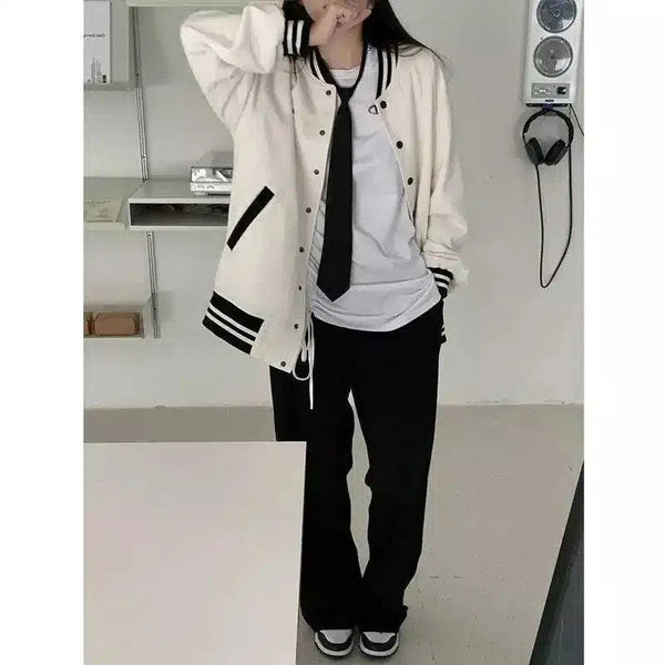 Μπουφάν Varsity με ριγέ μανσέτες και κλείσιμο με κουμπωτό