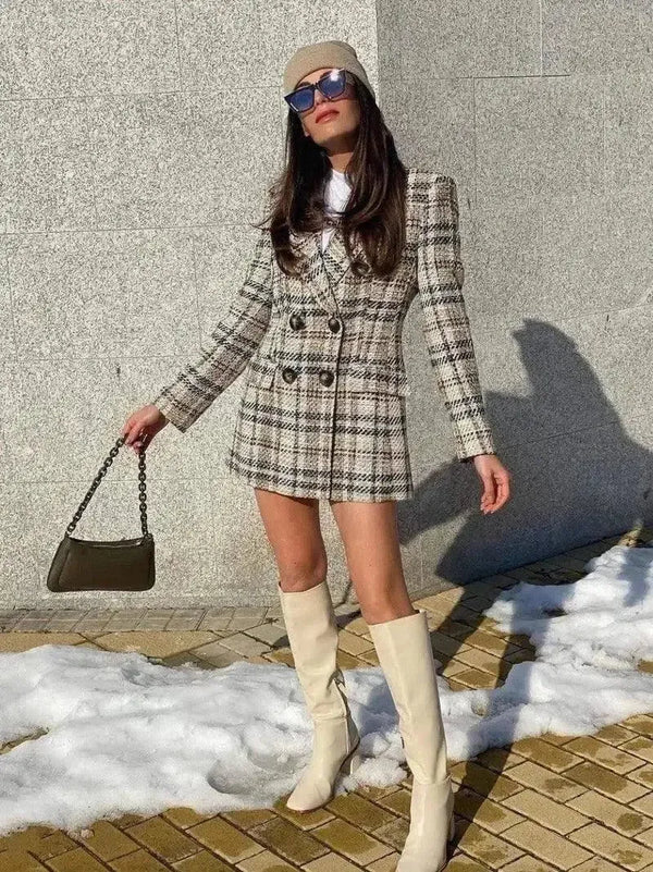 - Τύπος ενδύματος: Καρό μίνι φόρεμα σε στιλ σακάκι
