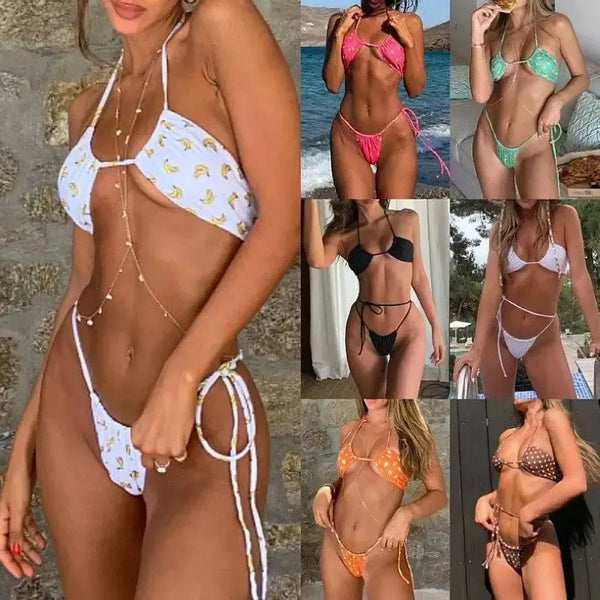 Μπικίνι Χρώμα Split Μπικίνι Παραλία Διακοπές Backless Μπικίνι