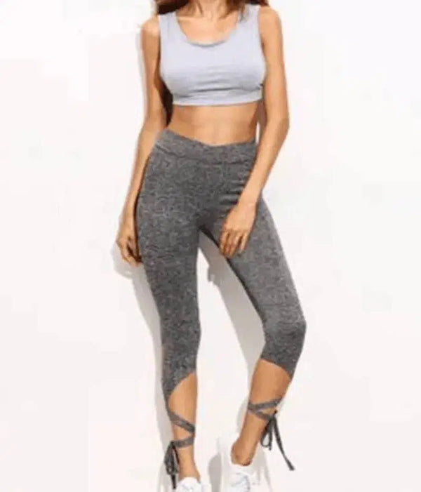Casual παντελόνι γκρι γοφούς υψηλή μέση σφιχτό bandage επτά