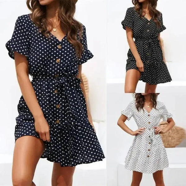 Casual πουά υψηλής ανύψωσης ιμάντα V-λαιμός σιφόν κυρίες φόρεμα