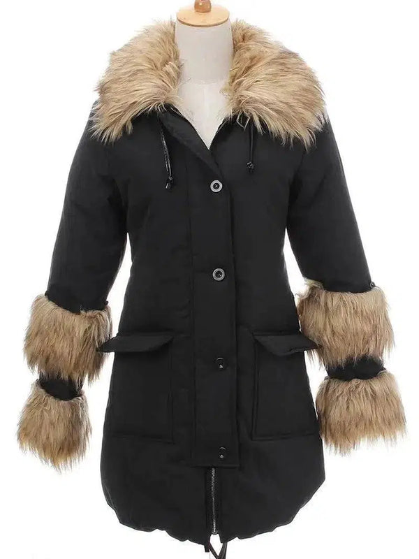 Casual γυναίκες με κουκούλα μακρύ ρούχα γούνα κολάρο μακρύ μανίκι