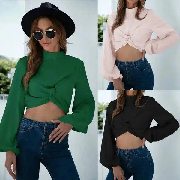 Γυναικεία Knotted Crop Top μακρύ μανίκι