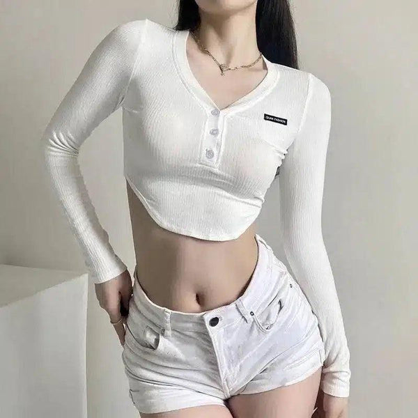 Γυναικείο Ribbed Crop Top με λεπτομέρεια κουμπιών