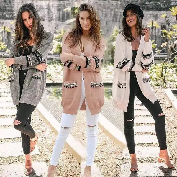 Γυναικεία Casual πλεκτή ζακέτα με τσέπες