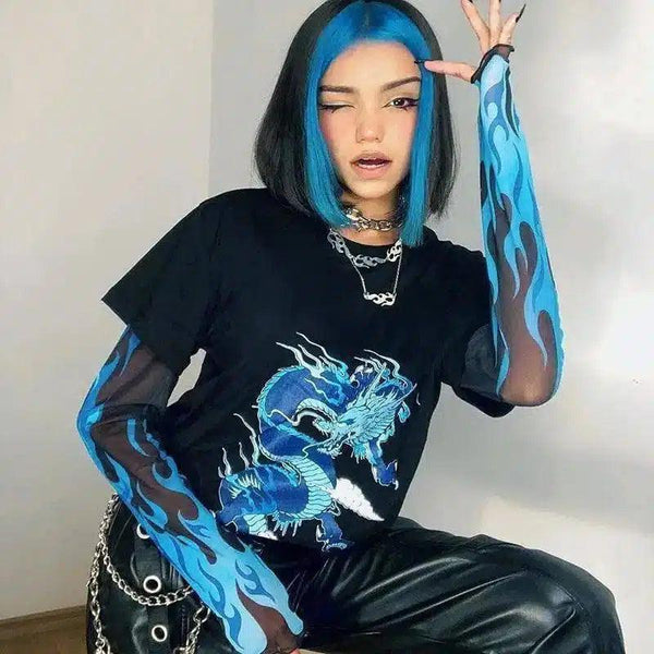 - Τύπος ενδύματος: Γραφικό T-Shirt με μανίκια από διχτυωτό πλέγμα