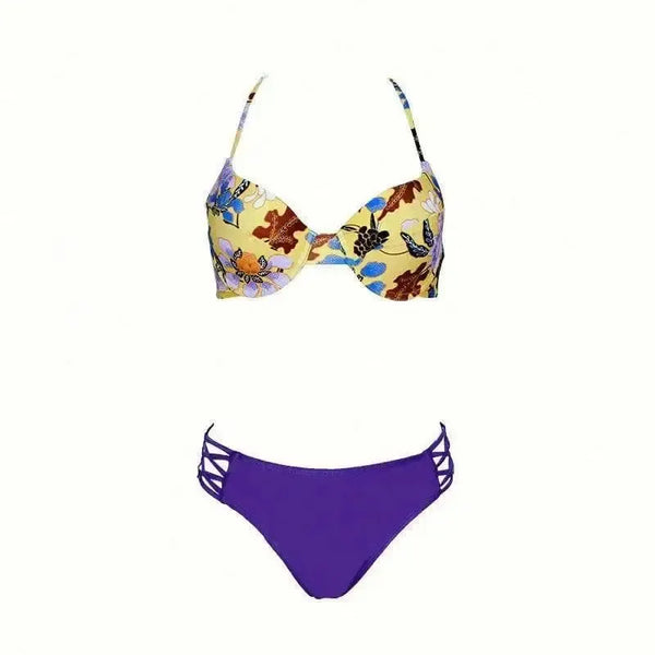 Λουλούδι μπικίνι λουράκι στερεό χρώμα σκληρό κάλυμμα μαγιό