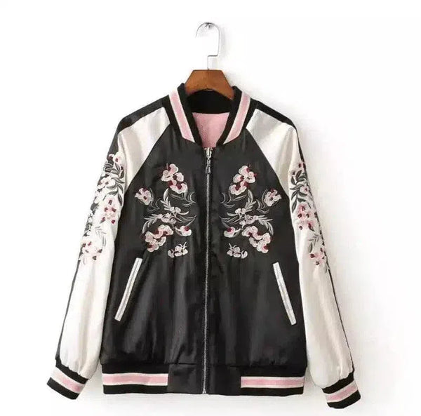 Κεντημένο Floral Bomber Jacket με φερμουάρ
