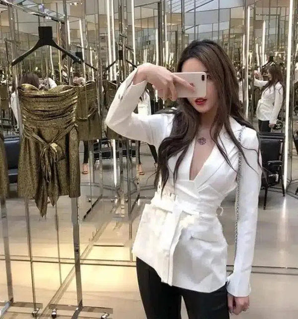 Λευκό σακάκι με ζώνη - κομψό και μοντέρνο