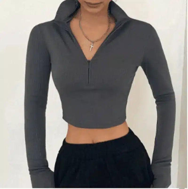 Γυναικεία φερμουάρ Crop Hoodie μακρύ μανίκι