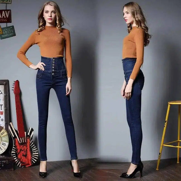 ψηλόμεσο τζιν θηλυκό λεπτό ελαστικό παντελόνι μολύβι πόδια