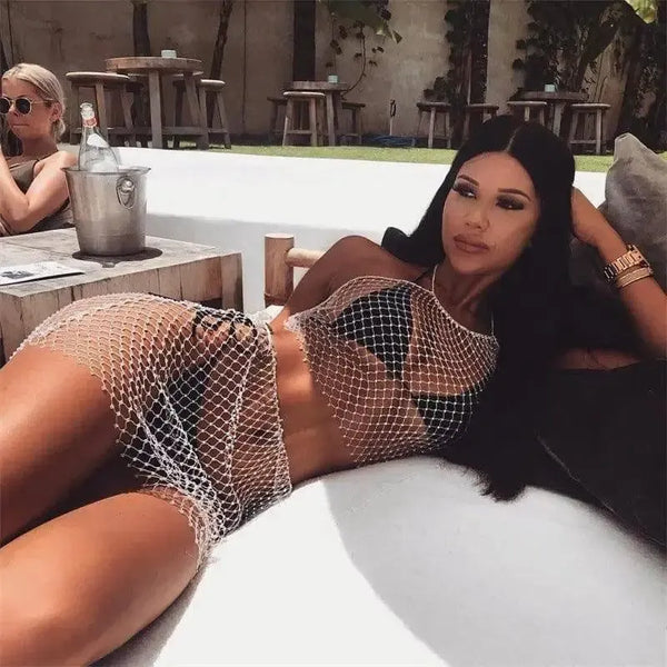 Hot Diamond γυαλιστερό μαγιό χειροποίητο υφασμένο δίχτυ αλιείας