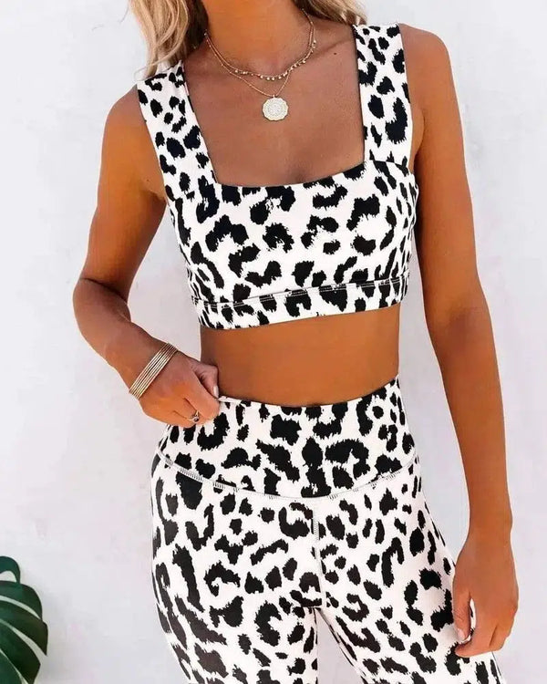 Hot Leopard Print Yoga Παντελόνι Sling Set