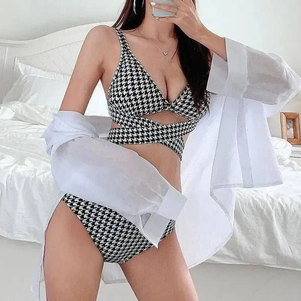 Μπικίνι με σταυρόδετο μαγιό Houndstooth