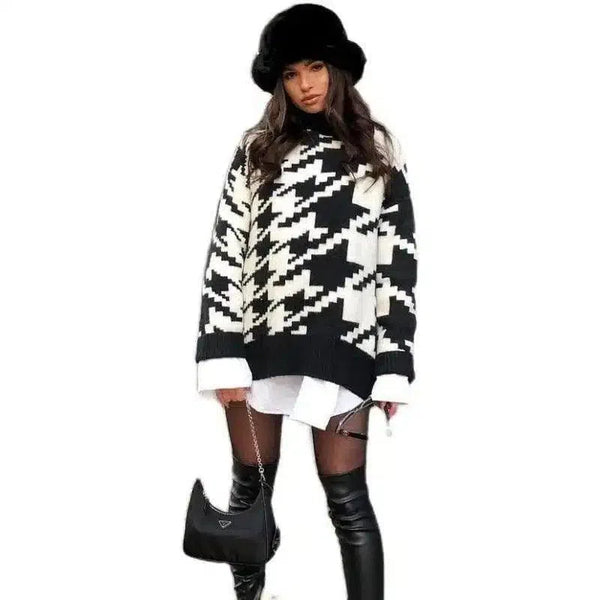 Ζεστό πλεκτό πουλόβερ Houndstooth
