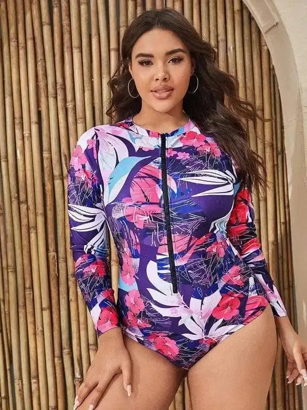 Κυρίες συν μέγεθος ολόσωμο μαγιό, μακρυμάνικο τυπωμένο