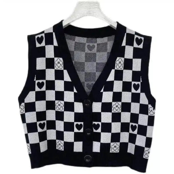 Πλεκτό καρό γιλέκο με κουμπιά μπροστά