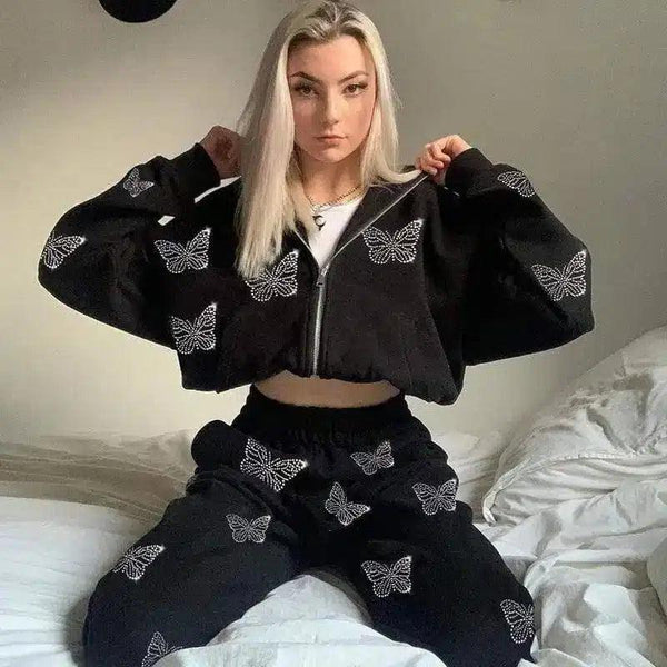Γυναικείο σετ φόρμας με κεντημένη πεταλούδα