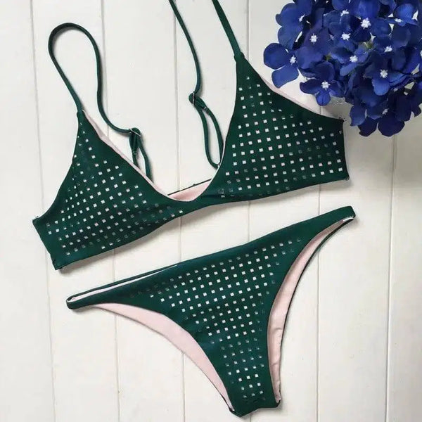 Πράσινο Halter Spaghetti Straps Μπικίνι μαγιό