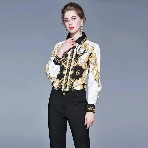 Ρετρό παλάτι εκτύπωσης Ruffled Slim-fit Μόδα εκτύπωσης πουκάμισο