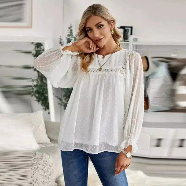 Γυναικεία μακρυμάνικη διάφανη μπλούζα με λεπτομέρεια δαντέλας