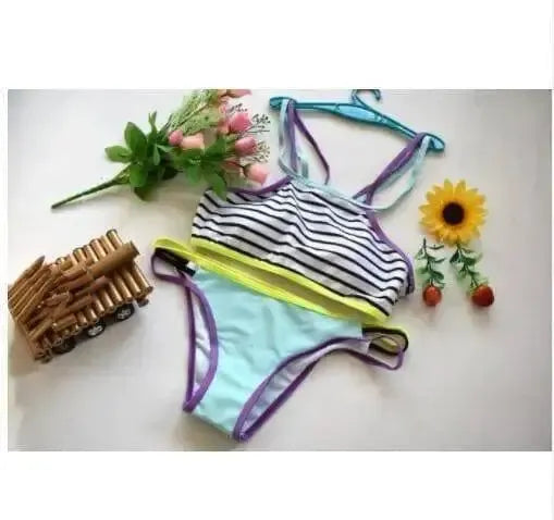 Stripped High Neck Patchwork Bikini Set Μαγιό μαγιό Μπάνιο