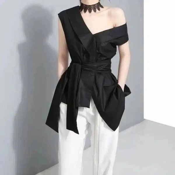 Off-Shoulder μπλούζα με φιόγκο στη μέση για γυναίκες
