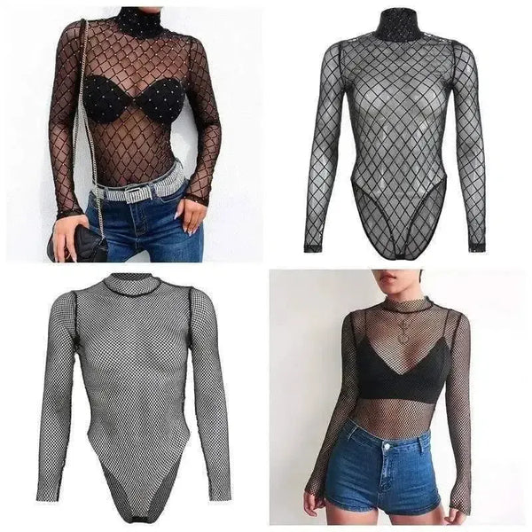 Γυναικείο Mesh Bodysuit με μακρύ μανίκι Top