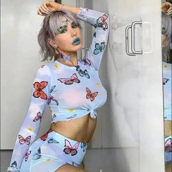 Προοπτική τυπωμένη πεταλούδα μακρυμάνικο T-shirt με μακρύ μανίκι