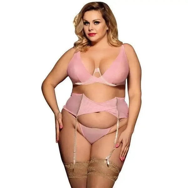 Ροζ διαφανές σετ πιτζάμες με καλτσοδέτες