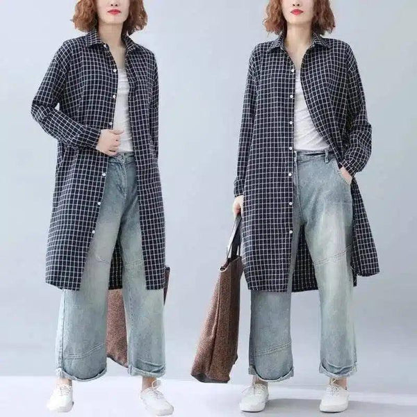 Καρό βουρτσισμένο χαλαρό και λεπτό μακρυμάνικο πουκάμισο