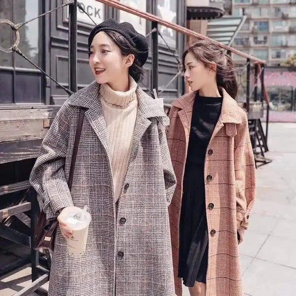 Καρό μάλλινο παλτό θηλυκό μακρύ τμήμα κορεατική έκδοση χειμώνα