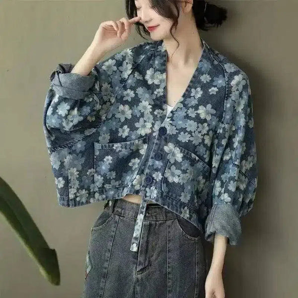 Floral Denim Cropped Jacket για γυναίκες