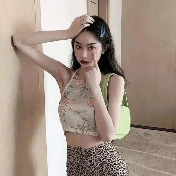 Εμπριμέ καμισόλ με λαιμόκοψη