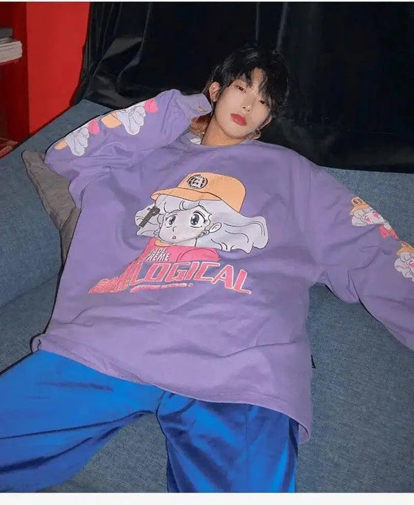 Τυπωμένο φαρδύ μακρυμάνικο T-shirt ανδρών