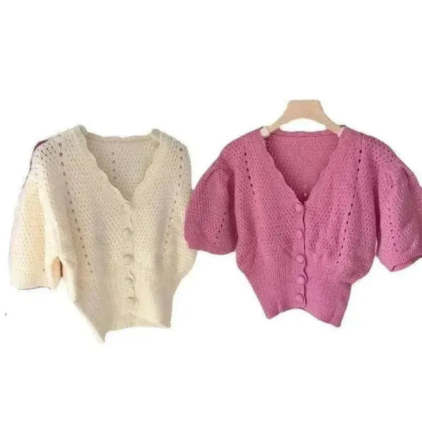 Πλεκτές κοντομάνικες ζακέτες με κουμπιά