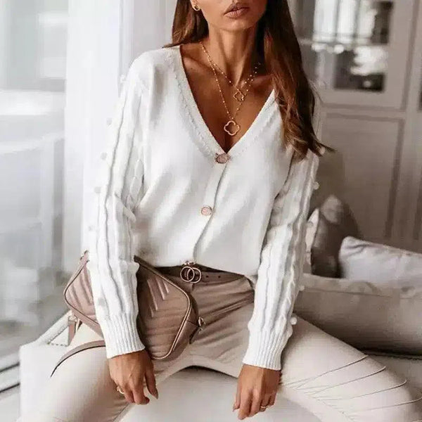 Γυναικείο πλεκτό πουλόβερ με V λαιμόκοψη και λεπτομέρεια με κουμπιά