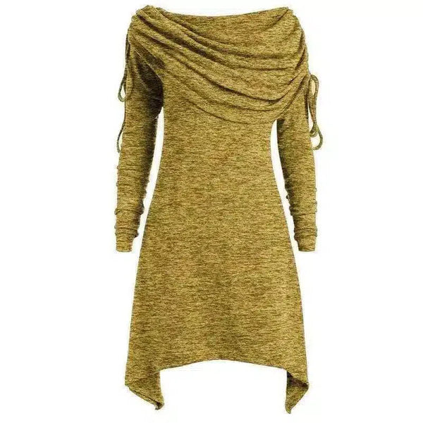 Ενσωματώστε αυτό το κομψό και μοναδικό Asymmetrical Drape Neck Dress στην γκαρνταρόμπα σας για ένα μείγμα άνεσης