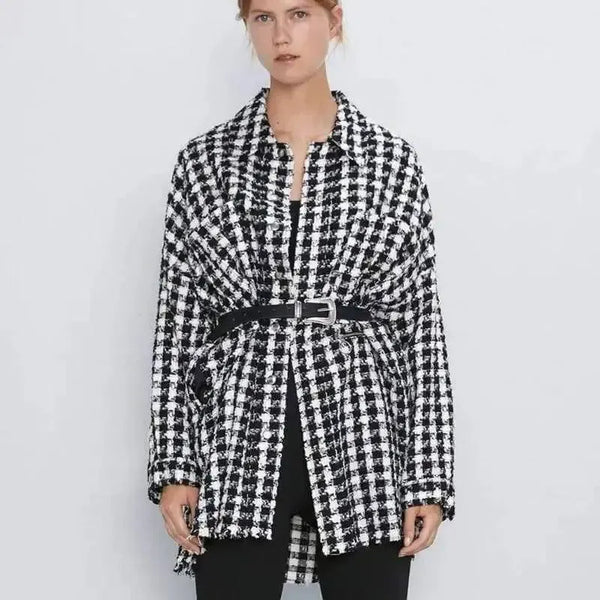 Γυναικείο σακάκι με ζώνη Houndstooth