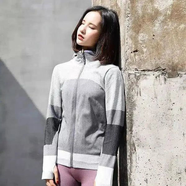 Γυναικείο αθλητικό μπουφάν με φερμουάρ και ρίγες