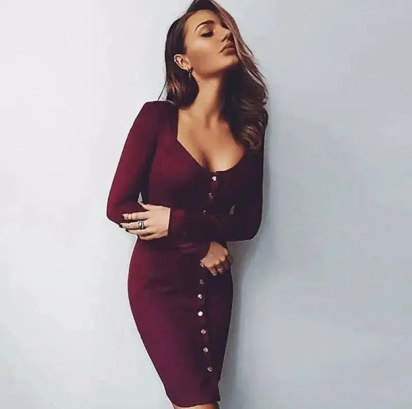 Άνοιξη Γυναίκες Bodycon Slim Μακρύ μανίκι Κόμμα Κοκτέιλ Pencil