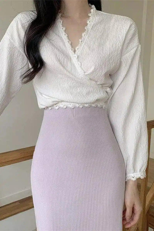 Μπλούζα με δαντέλα και πλεκτή pencil φούστα