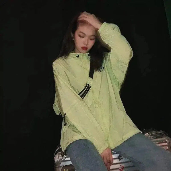 Αθλητικές πινελιές: Διακοσμημένο με μαύρες ρίγες και γραφικά στοιχεία σε αντίθεση, αυτό το μπουφάν προσθέτει μια σπορ πινελιά στο σύνολό σας.