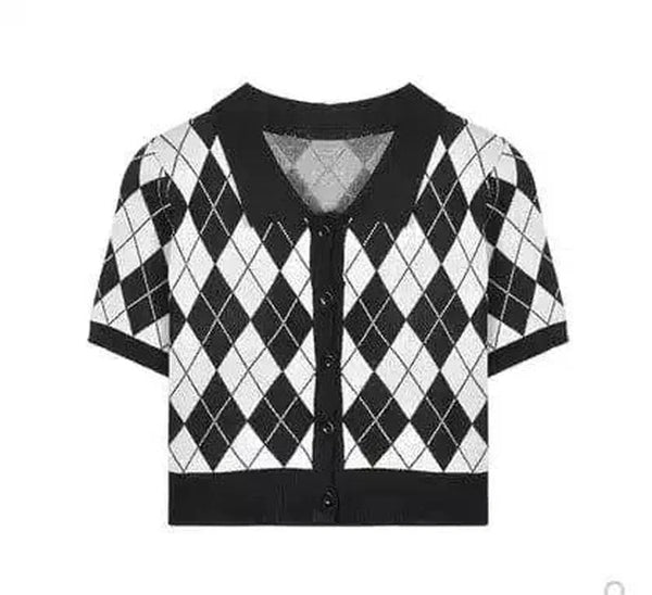 Καρό κοντομάνικη πλεκτή ζακέτα με κοντό μανίκι