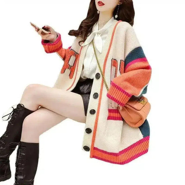 Γυναικεία υπερμεγέθη πλεκτή ζακέτα με ρίγες