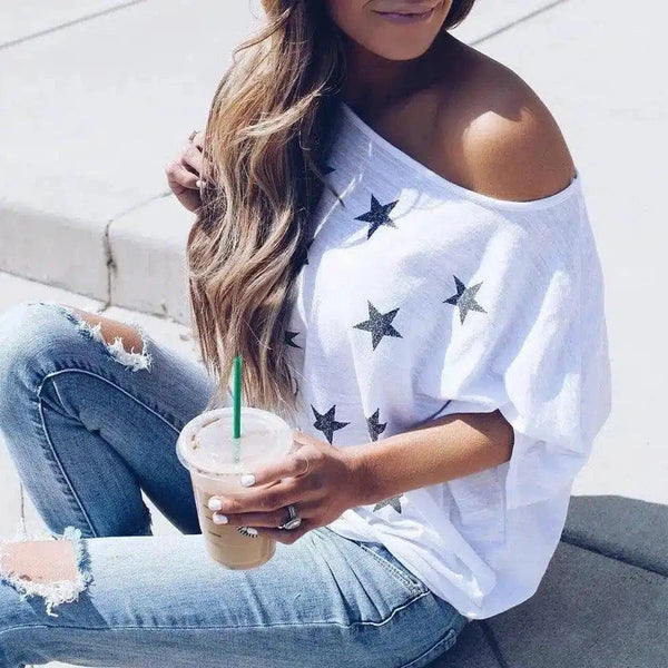 Γυναικείο μπλουζάκι Off-Shoulder Star Print