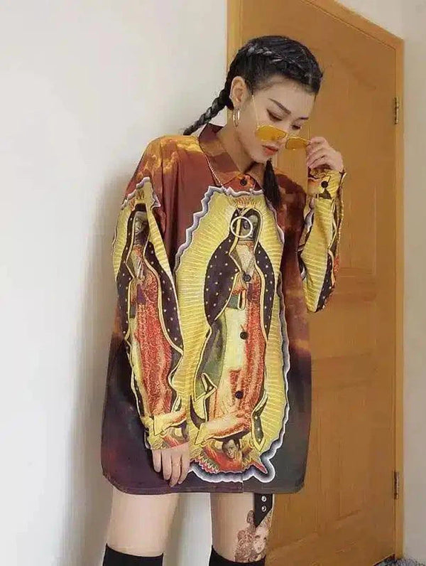 Πουκάμισο Virgin Mary Digital Print Harajuku