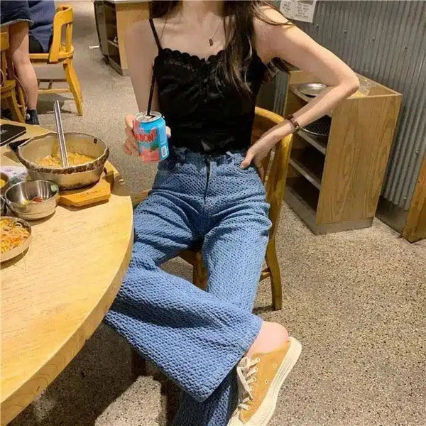 Γυναικείο παντελόνι περιστασιακής χρήσης με υφή υψηλής μέσης