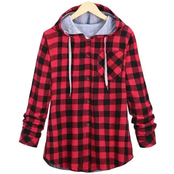 Πουκάμισο με κουκούλα και τσέπες από φανέλα με καρό